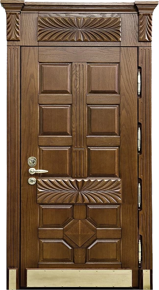 В основе конструкции элитных дверей в Емве - стальной лист толщиной не менее 2.0 мм, дверное полотно укреплено ребрами жёсткости (могут быть горизонтальными, вертикальными, комбинированными). При желании можно сделать дверь из стали 3.0 и даже 4.0 мм. Но тут есть ряд особенностей. Полотно и каркас такой двери невозможно сделать из гнутого профиля, конструкция только сварная. Ну и надо помнить, что двери из толстого металла очень тяжёлые, а следовательно, травмоопасные.