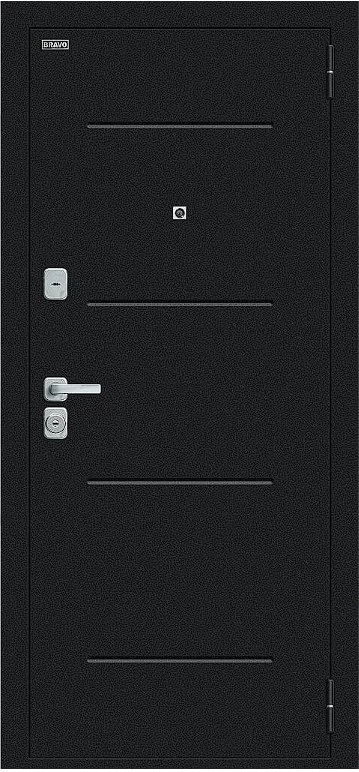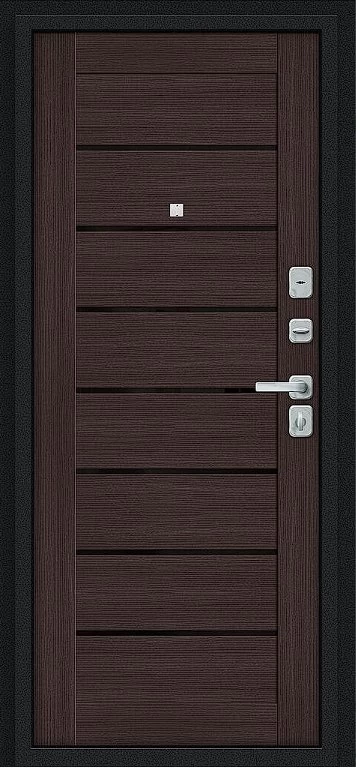 Надежная входная Дверь Браво Техно/BChrome Букле черное/Wenge Melinga премиум класса по цене 34 795 руб. Большая толщина стали защитит от проникновения в ваш дом, квартиру или коттедж. Используется очень качественная фурнитура: замки, цилиндры, ручки, защелки. Покрытие и отделка двери изготовлено под внимательным контролем производителя. Дверь имеет долгий срок службы и гарантию.